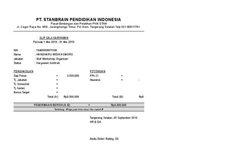 Contoh slip gaji pt samjin gaji.
